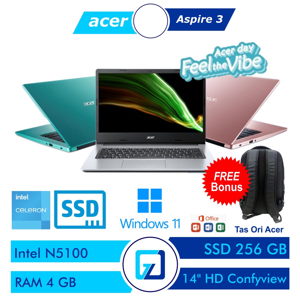 Spesifikasi : - Intel® Celeron™ N4500 ( 2.80 GHz Frekuensi Turbo - 2 Core 2 Threads ) - RAM 4GB DDR4 / 8GB DDR4 ( Manual Upgrade ) - Storage 256 GB PCIe® NVMe™ M.2 SSD - Screen 35.6 cm (14") diagonal, HD (1366 x 768), micro-edge, BrightView, 250 nits, 45% NTSC - Intel® UHD Graphics - Windows 11 Home + OHS - Wireless : Realtek RTL8822CE 802.11a/b/g/n/ac (2x2) Wi-Fi® and Bluetooth® 5 wireless card - Battery : 3-cell, 41 Wh Li-ion - Webcam : 720p HD • Keyboard Backlit • Minimum dimensions (W x D x H) : 32.4 x 22.5 x 1.79 cm • Weight : 1.46 kg • Power supply type : 45 W Smart AC power adapter • Battery type : 3-cell, 41 Wh Li-ion • Webcam : HP TrueVision HD Camera with integrated dual array digital microphone • Audio : Dual speakers • Operating system : Windows 11 Home • Software : Office Home and Student • Expansion slots : 1 multi-format SD media card reader • External ports : 1 USB 3.1 Gen 1 Type-C™ (Data Transfer Only, 5 Gb/s signaling rate); 2 USB 3.1 Gen 1 Type-A (Data Transfer Only); 1 AC smart pin; 1 HDMI 1.4b; 1 headphone/microphone combo